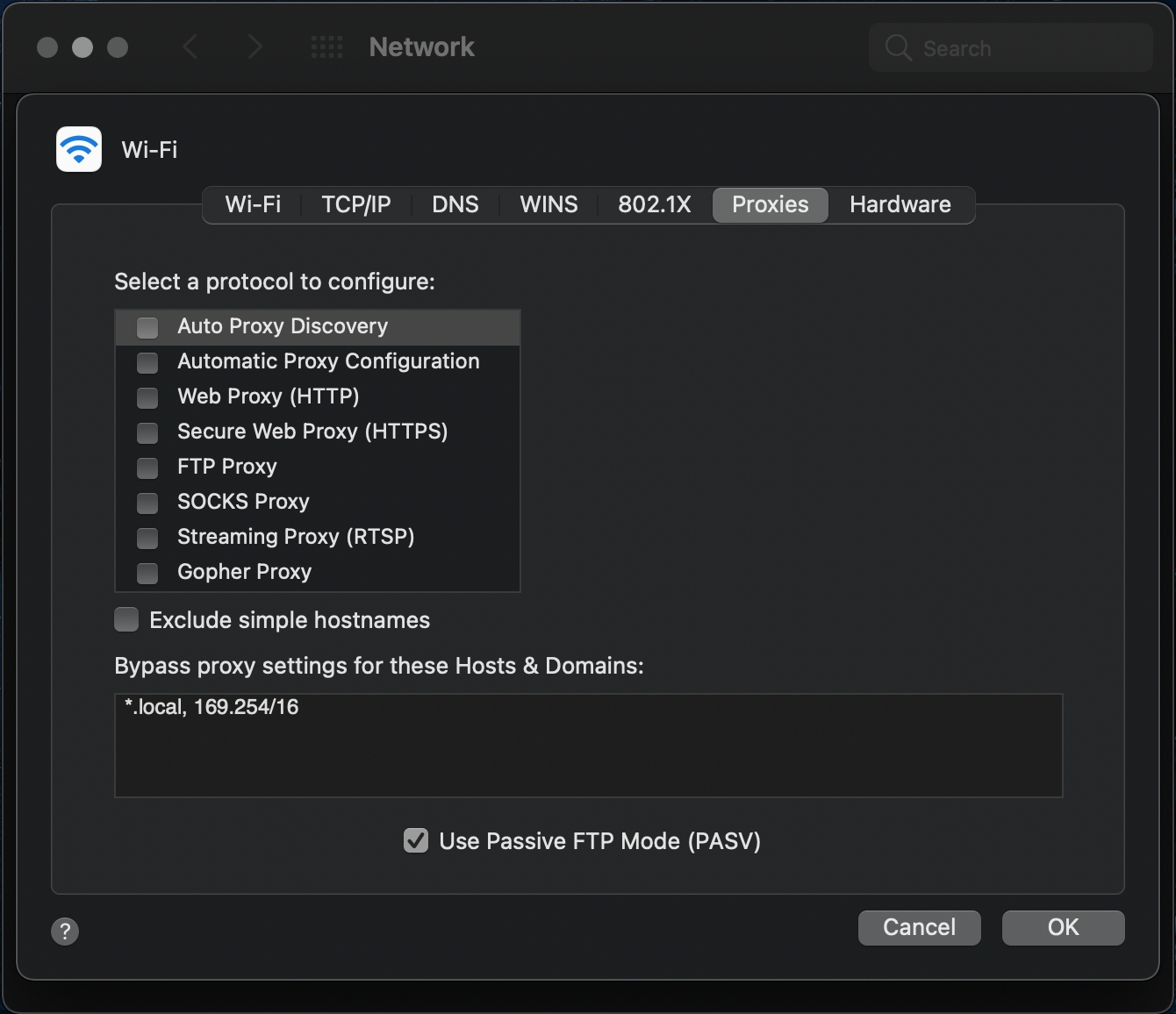 To disable WPAD on macOS ensure all protocols are disabled in the advanced network interface settings.